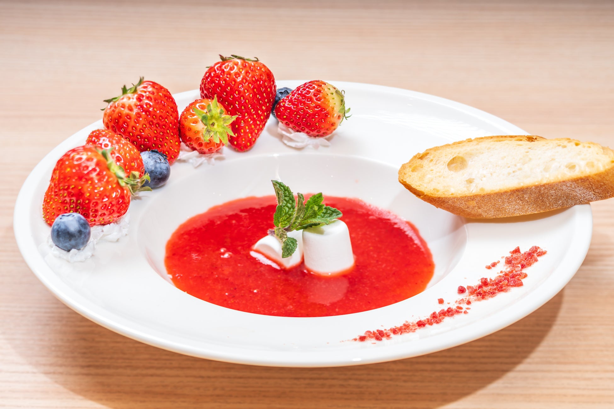 コース料理のデザートを苺たっぷりのシェフ特製スイーツにグレードアップいただけます。