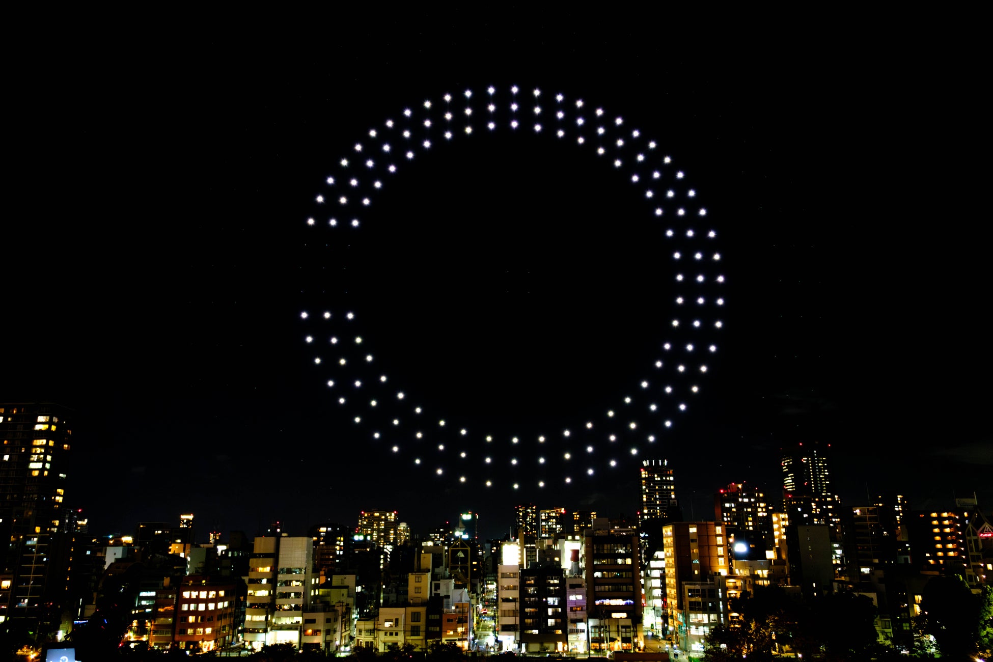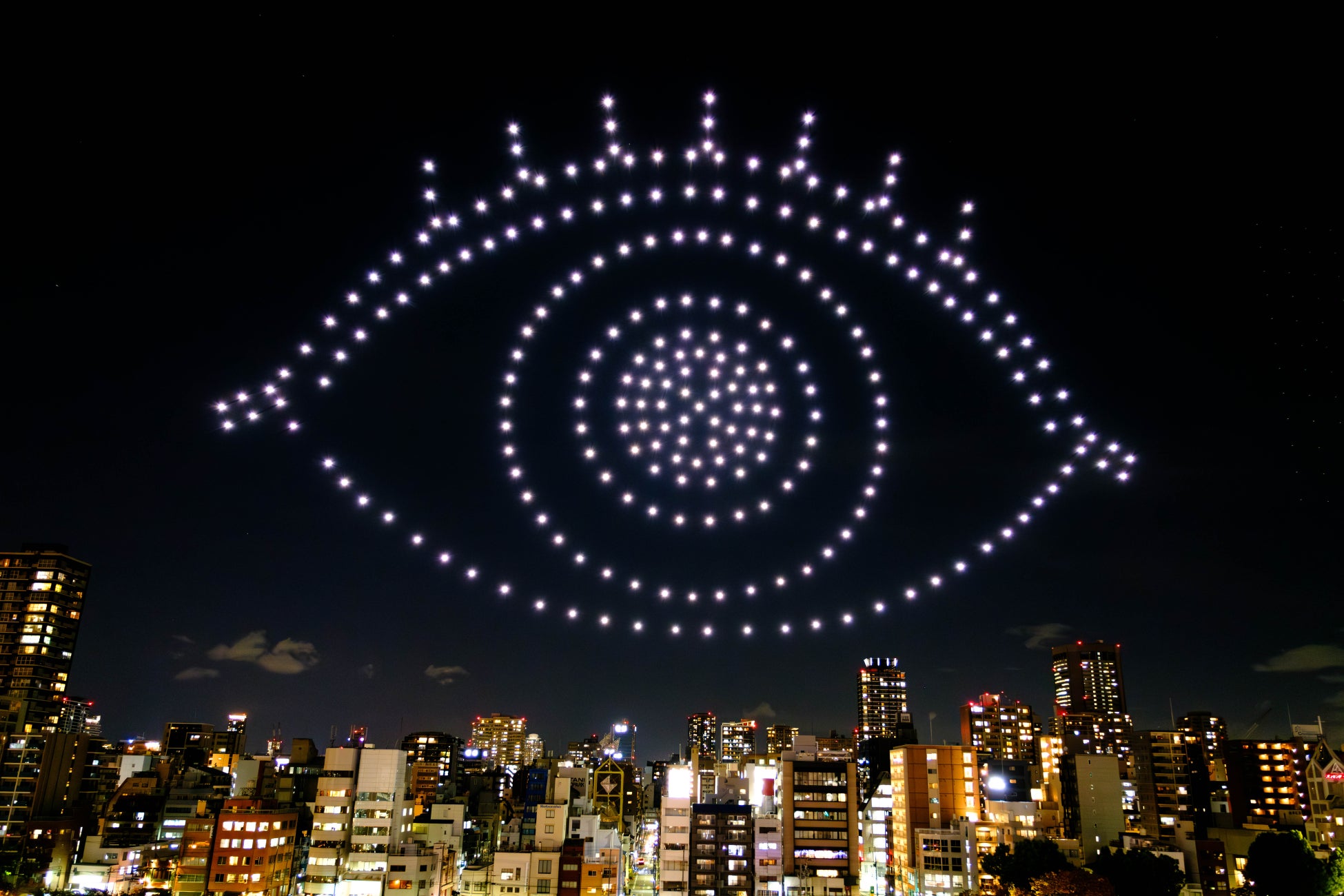 ロート製薬が企画・制作したドローンショー『目の愛護ショー』は、2023年10月10日の「目の愛護デー」に合わせて、大阪市中央区の八軒家浜船着場付近で開催しました。ショーでは「つかれた目を休めるためには、遠くを見ることが大切」というメッセージのもと、大阪の夜空を舞台にドローン300機による全長100メートルの巨大な目を描きました。