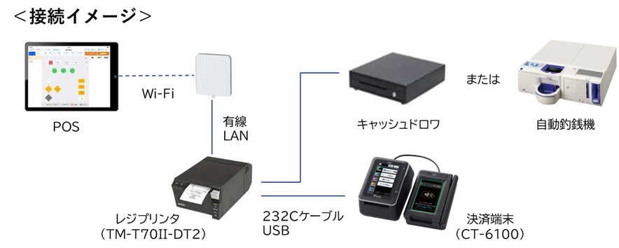 ※本機能のご利用には「マルチ決済端末連携」オプションのご契約、およびアクセスポイントとレジプリンタ(TM-T70II-DT2)のご導入が必要となります。