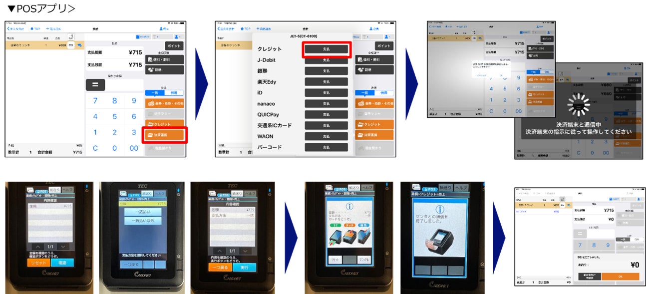 4:決済端末側に支払種別と会計金額が自動で連携されるので、決済端末側で確認