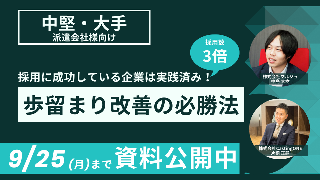 株式会社CastingONE(キャスティングワン、本社:東京都千代田区、代表取締役:野澤 怜司)は、株式会社マルジュと共催セミナー「採用に成功している企業は実践済み!歩留まり改善の必勝法」を開催しました。