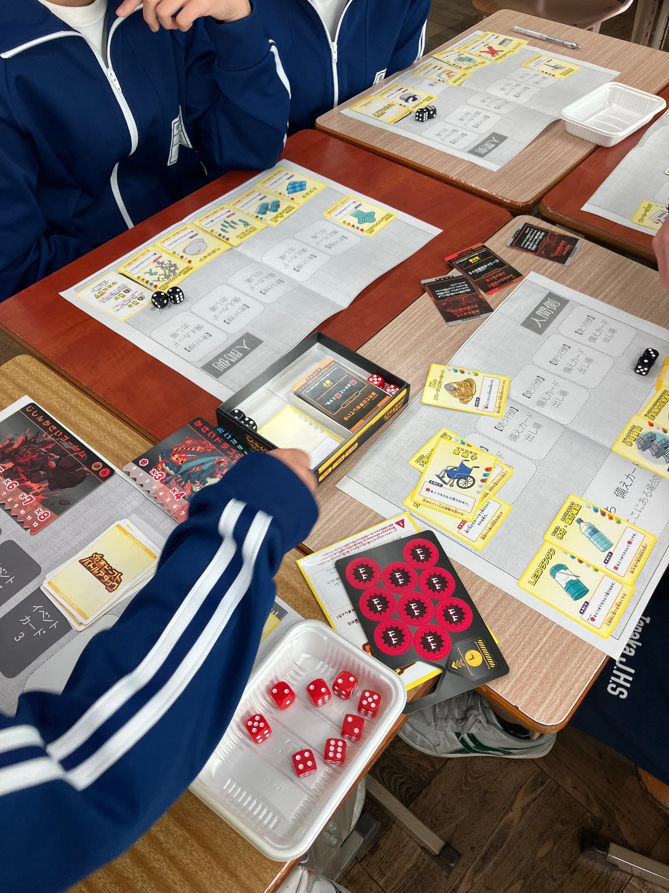 授業当日は、生徒たちが災害をモンスター化した“災害ビースト”に果敢に挑み、避難判断・備蓄・行動選択などをゲーム形式で考えることで、教室は活発な議論と熱気に包まれました。
