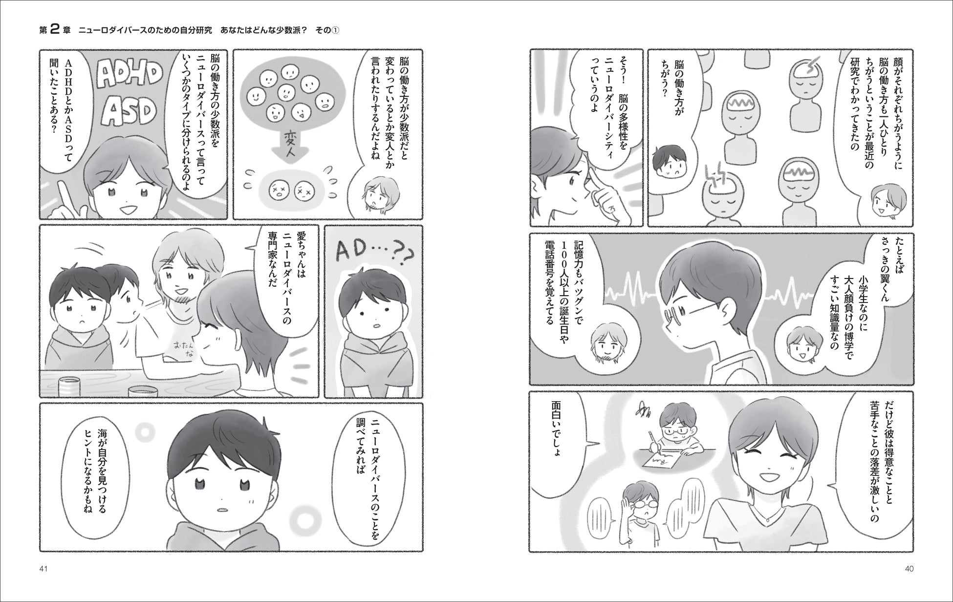 本書の最も大きなキーワードは“ニューロダイバーシティ”。近年、私たち一人ひとりの顔や声が違うように、それぞれの脳も異なることがわかってきています。本書では、ニューロダイバーシティの考え方を解説、その上で、さまざまな特性に応じた対処法、将来を考える上でのポイントなどを具体的に紹介します。