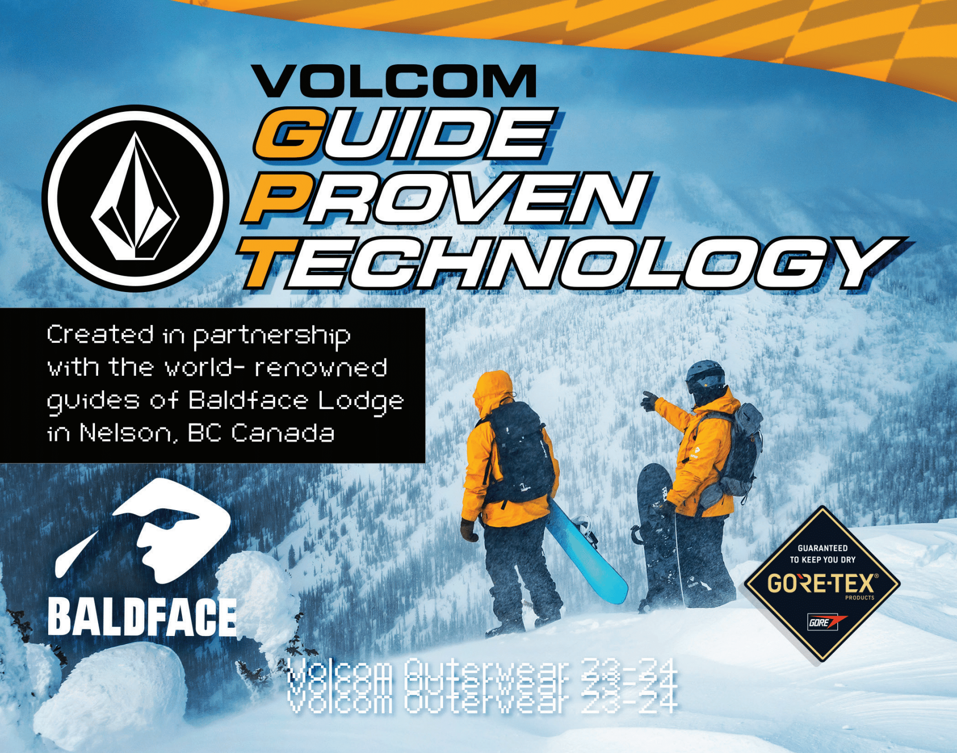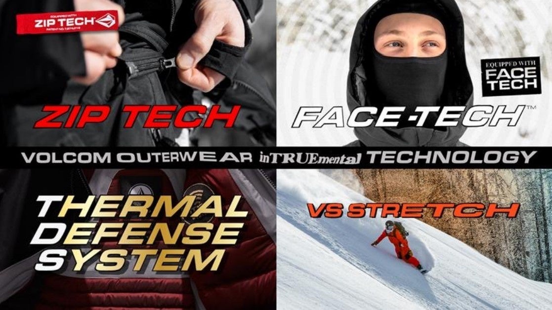 VOLCOMのマテリアルやテクノロジーには、GORE-TEX生地をはじめ、スノーボーダーの聖地バルドフェイスのガイドと共同開発した「GPT(ガイドプルーブンテクノロジー)」、過酷な気象状況下において軽量・保温・通気という要素を最高レベルで満たしてくれる「Thermal Defense System(サーマル ディフェンス システム)」、ウエア内への雪の侵入を防ぐVOLCOM独自の機能「ZipTech(ジップテック)」、フード内に収納された取り外し可能なフェイスマスク内蔵システム「FaceTech」、ウエア内の温度の調整が容易にできるベンチレーションなど、雪山の過酷な環境で快適に過すごせるように、各モデルそれぞれに機能を兼ね備えている。