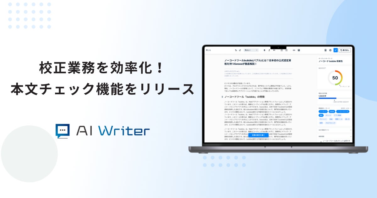 ライティング効率と記事品質を同時に高める新モードが登場、誰でも簡単に使える校正支援ツール