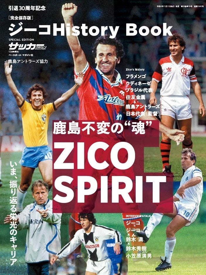 ジーコクラブアドバイザー(CA)引退30周年の特別企画として制作した記念誌「ジーコHistory Book」(サッカーマガジン12月号増刊SPECIAL EDITION、鹿島アントラーズ協力)を11月6日(水)に発売しますので、お知らせいたします。