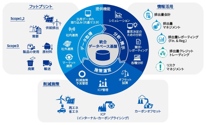 なお、Climate Accounting Infrastructureを支えるデジタルプラットフォームの構築にあたっては、Microsoft※1「Microsoft Cloud for Sustainability」、Salesforce※2「Net Zero Cloud」、SINAI Technologies※3「SINAI Decarbonization Intelligence Platform」、アスエネ※4「アスゼロ」など、企業のニーズに合わせ最適なソリューションを活用します。これにより、各種データの透明性と信頼性を確保するとともに、リスクマネジメントなどさまざまな領域におけるデータの利活用も可能になります。