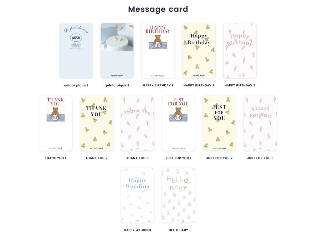 ジェラート ピケオリジナルのデジタルメッセージカードをお選びいただけます。