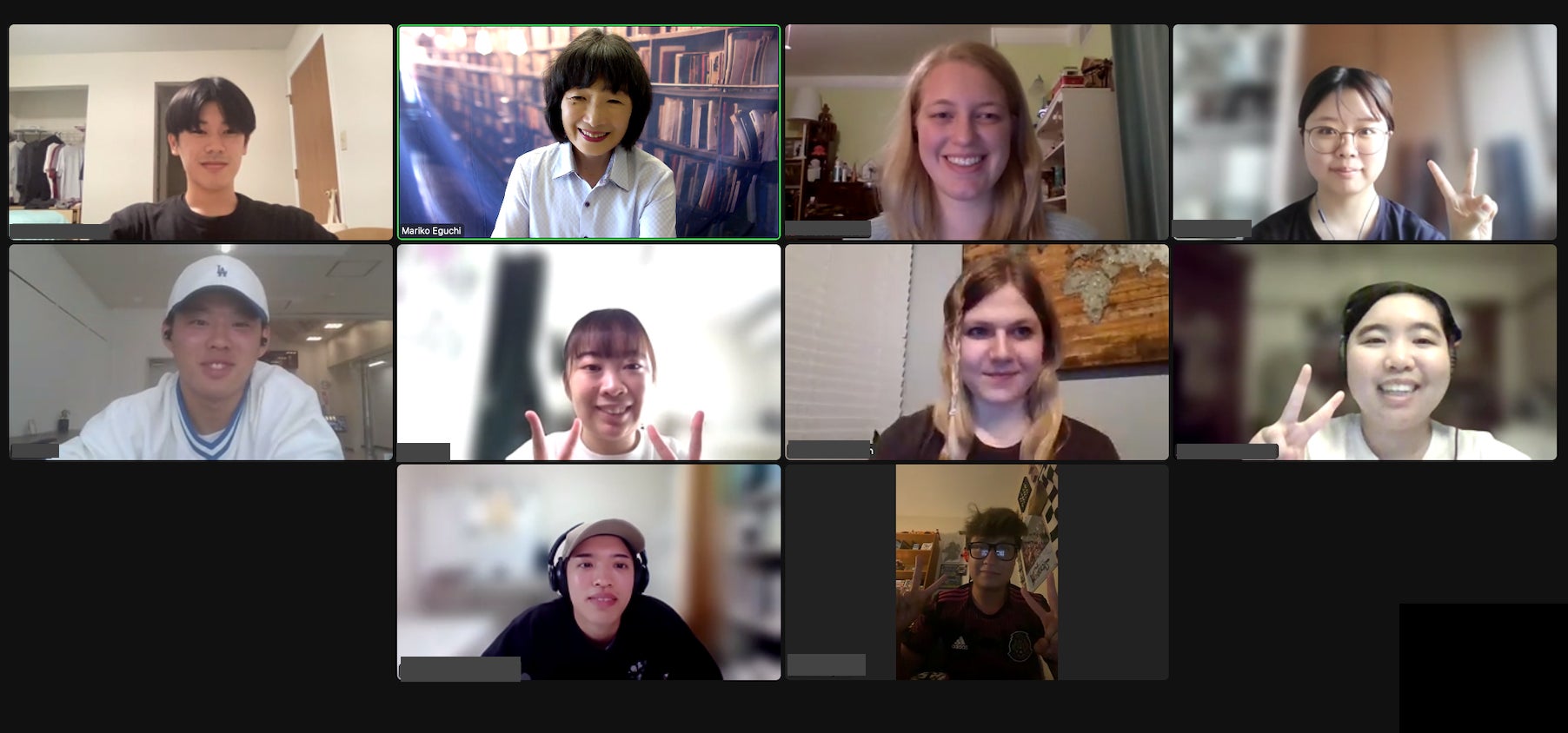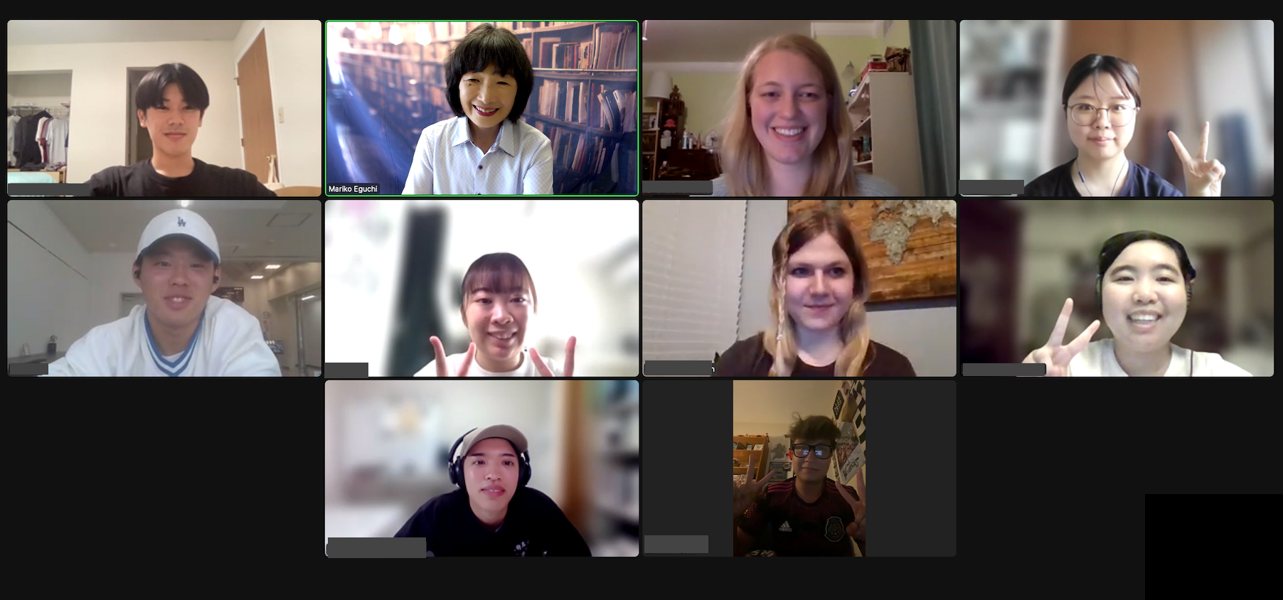 日本の参加者は、国際関係学部、地域政策学部の学生4名で、英語圏への留学を支援するための科目である「TOEFL留学準備講座」の受講生。アメリカの参加者はシカゴにあるイリノイ大学で日本語を学ぶ学生5名でした。