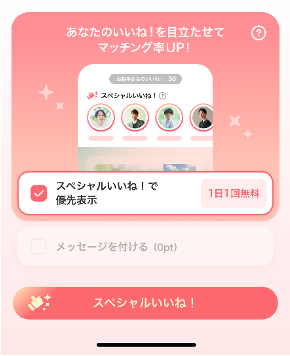 ②「スペシャルいいね!」が1日1回無料