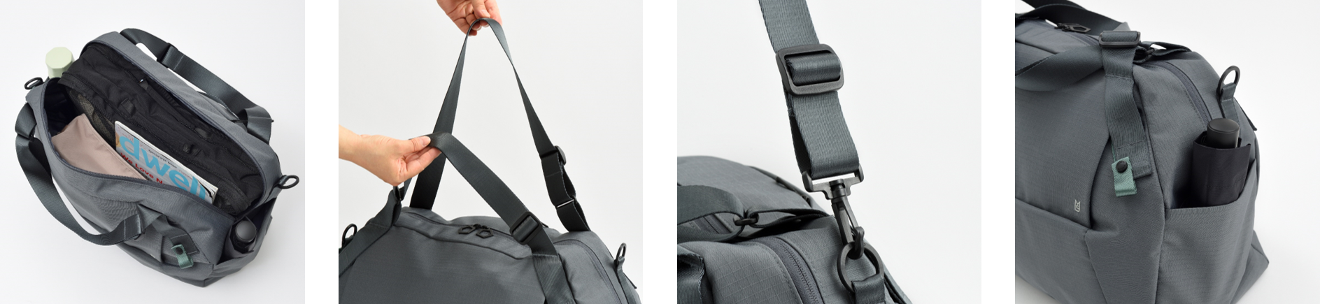 日帰りやショートトリップに最適な容量約35Lを採用。手持ちハンドルは長さ調節ができ、付属のショルダーストラップを取り付ければ肩掛けや斜め掛けでの使用も可能です。