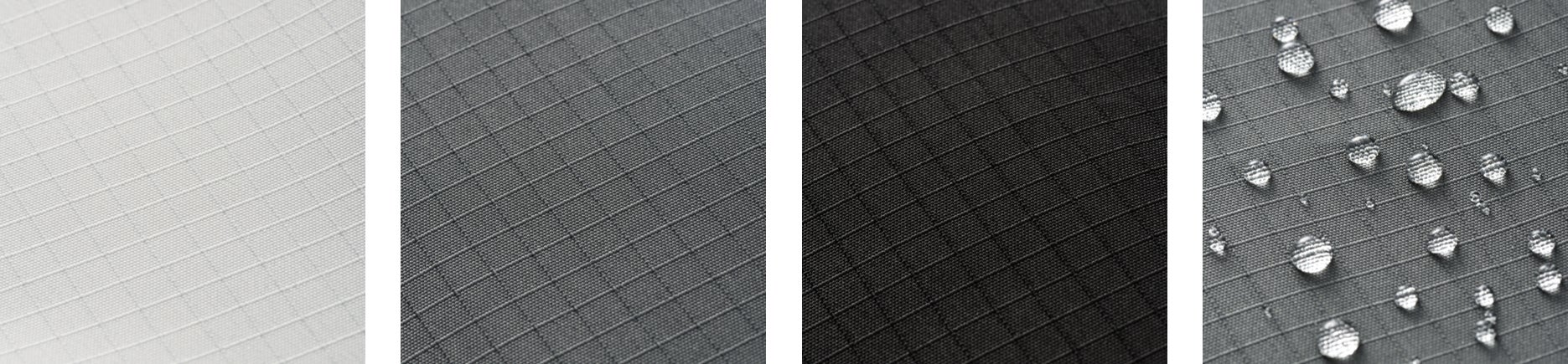 生地表面には撥水加工を施し、軽量かつ引き裂きに強いポリエステル糸を格子状に織り込んだリップストップ生地を採用。裏面にPU加工を施し、更に強度をアップしています。