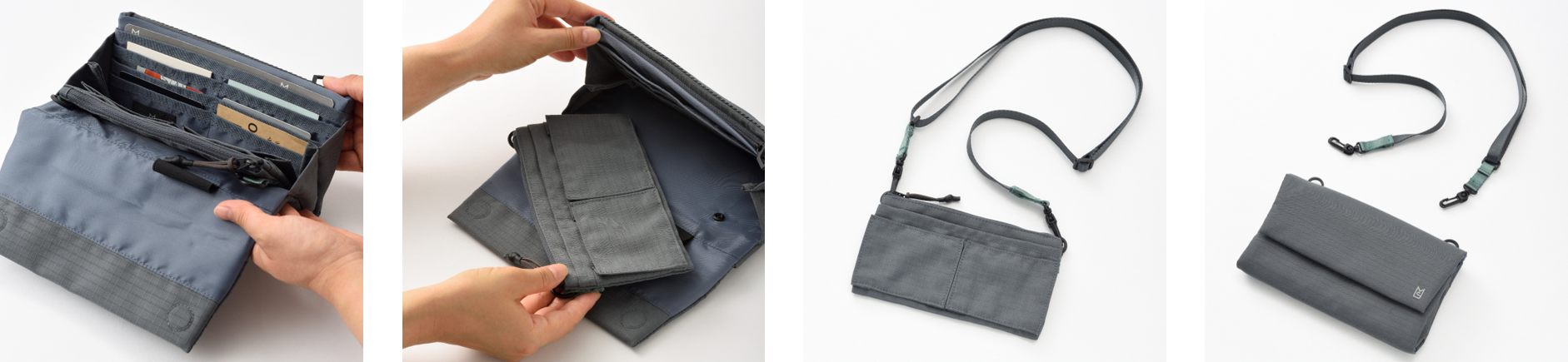 ショルダーストラップを取り外し、付属のポーチへ取り付けが可能。取り外したショルダーストラップを付属のポーチに装着することで、独立したショルダーポーチとしても使用できます。