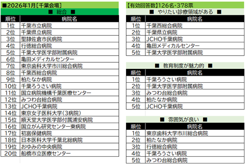 【千葉会場】では1位に千葉市立病院、2位に千葉県立病院と、ともに公立病院がトップ2を獲得。