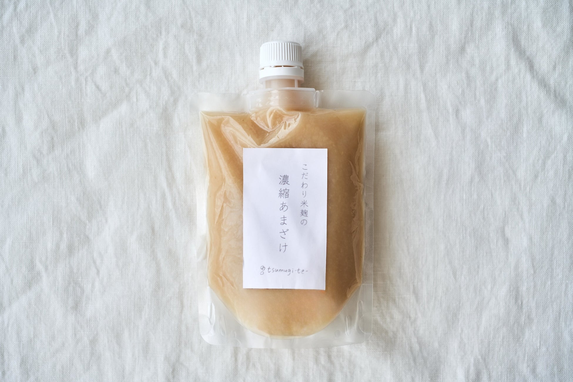 使いやすい濃度で、こだわりの原料で作った濃縮あまざけ。300年以上の歴史を持つ福島県の老舗「仁井田本家」の米麹を使用。甘酒といえばドリンクと思われがちですが、こだわり米麹の濃縮あまざけは、ストレート甘酒に比べて水分量が少ないので、甘みを活かしやすく、砂糖がわりの調味料として大活躍。