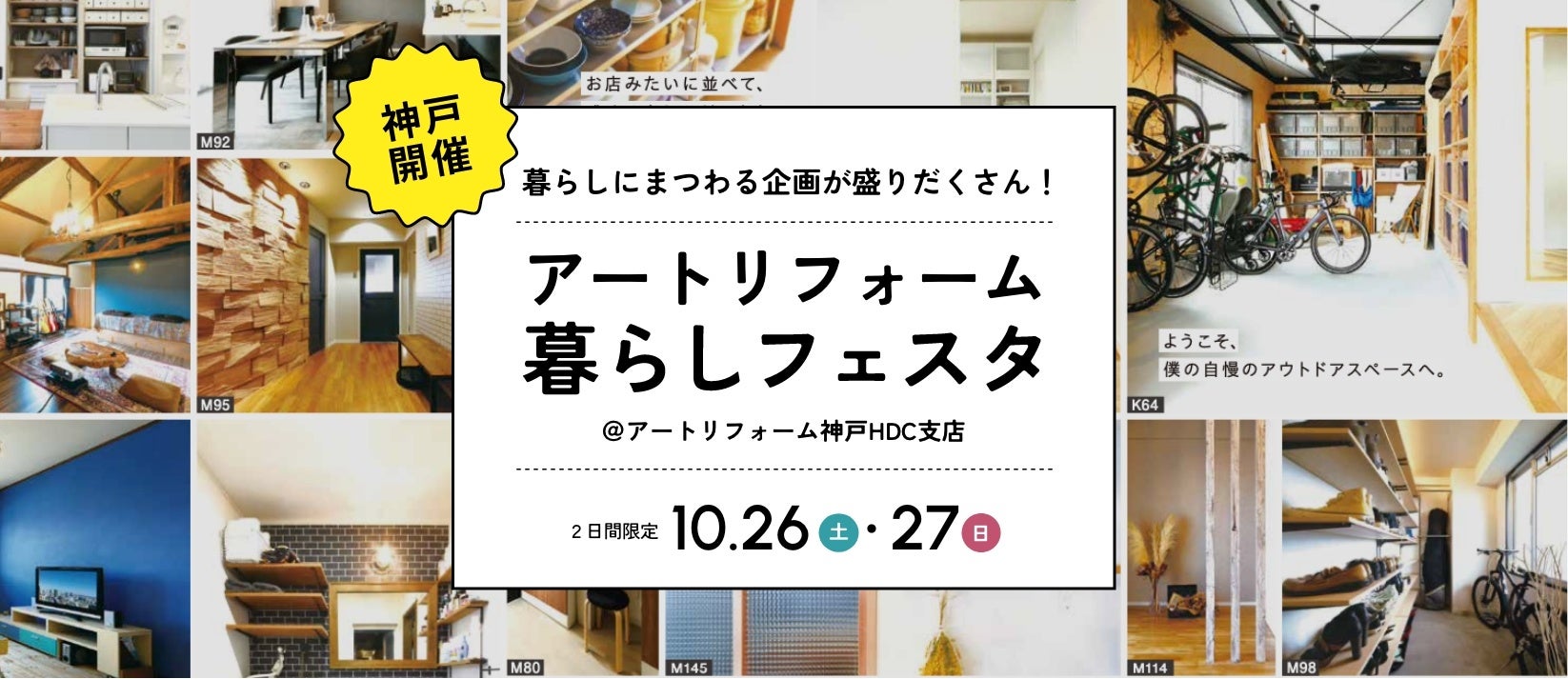全国でリフォーム・リノベーション工事を年間6,500件以上手がける株式会社アートリフォーム(本社:大阪府吹田市、代表者:代表取締役社長 大本哲也、以下「アートリフォーム」)は、大人気のワークショップや整理収納セミナー、リフォーム相談会など、暮らしにまつわる企画が盛りだくさんのイベント「アートリフォーム暮らしフェスタ」を2024年10月26日(土)~27日(日)に、旗艦店舗である神戸HDC支店にて開催します。