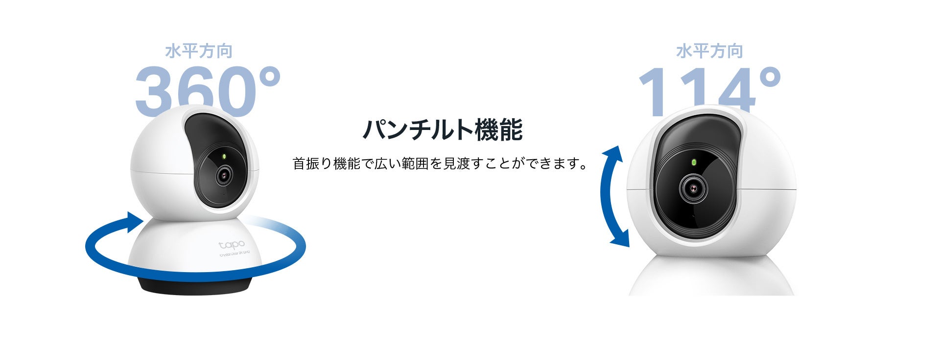 ・パンチルト:水平方向360°、垂直方向114°の首振りに対応