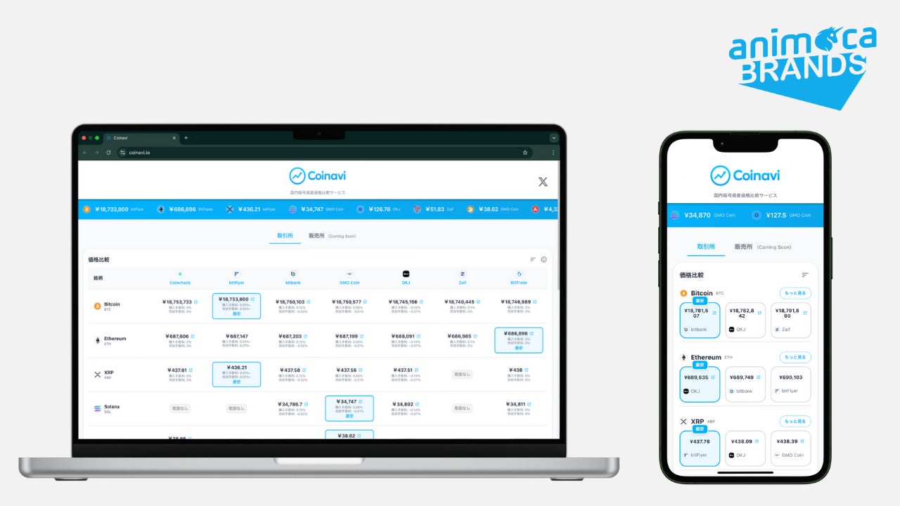 Animoca Brands Japan、暗号資産の価格比較サイト「Coinavi」を公開