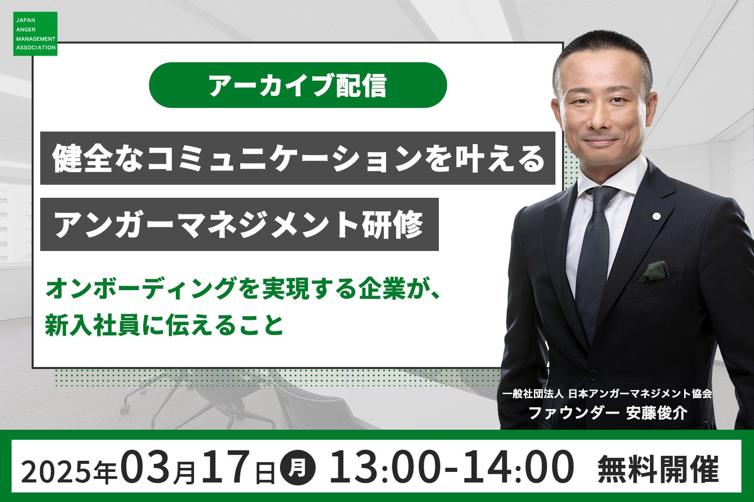 新入社員の入社を控えたこの時期に、オンボーディングを支えるアンガーマネジメントの理念を学び、信頼される社員育成のヒントを得る機会としてぜひご活用ください。