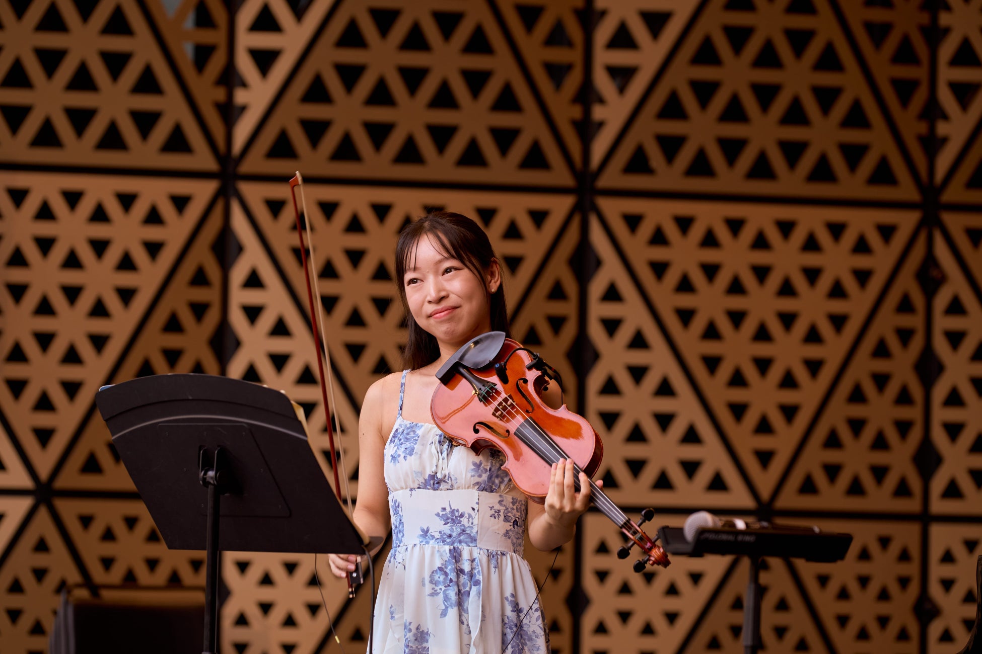 演奏は『アラジン』より「ホール・ニュー・ワールド」や「ユー・レイズ・ミー・アップ」などが披露された。夕日が落ちる中、フルートの優雅な旋律が会場に響き渡り、この特別なコンサートの締めくくりにふさわしい美しい演奏となった。