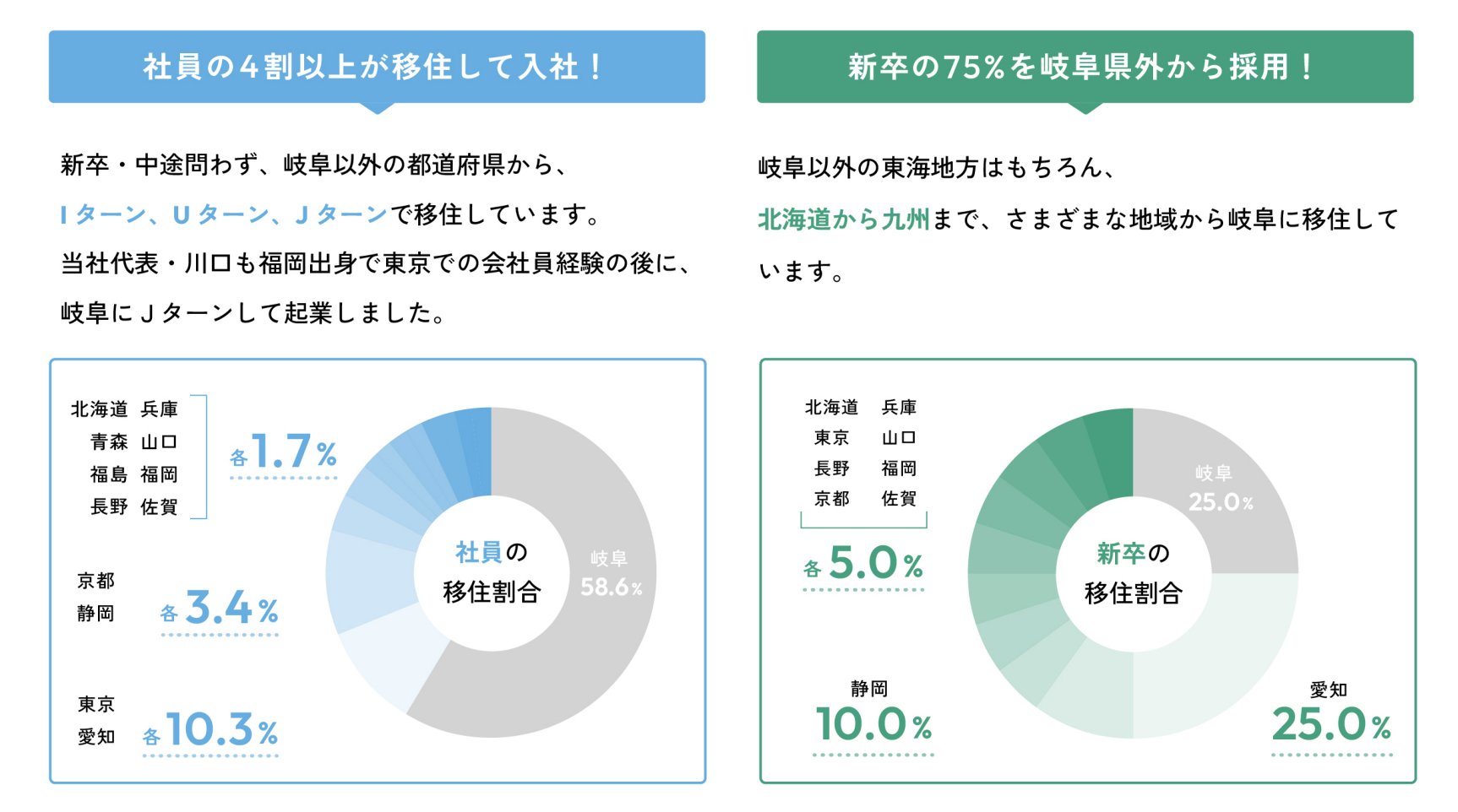 毎年全国から応募が寄せられ、新卒の75%は移住採用。地方の雇用創出に貢献いたします。