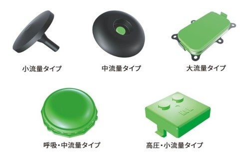 用途や機能、開弁圧、流量に応じて、素材や仕組みが異なる5種類の製品にて対応いたします。バッテリーパック用には、小流量タイプ、中流量タイプ、大流量タイプ、さらに呼吸弁と圧力開放弁を一体化した呼吸・中流量タイプ(Diavent®)、バッテリーセル用には、繰り返し使用可能な高圧・小流量タイプを提供し、弁交換の手間を省きます。