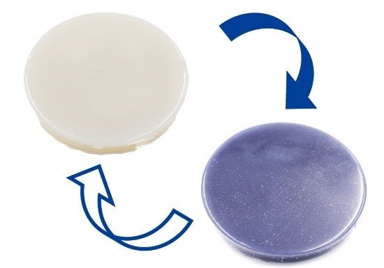 この水素検知ゴムは、東京理科大学との共同研究にて開発し、外部からの刺激によって色が変わるクロミズムを利用しています。さまざまな形状に成型でき、用途に応じた形状での提供が可能です。