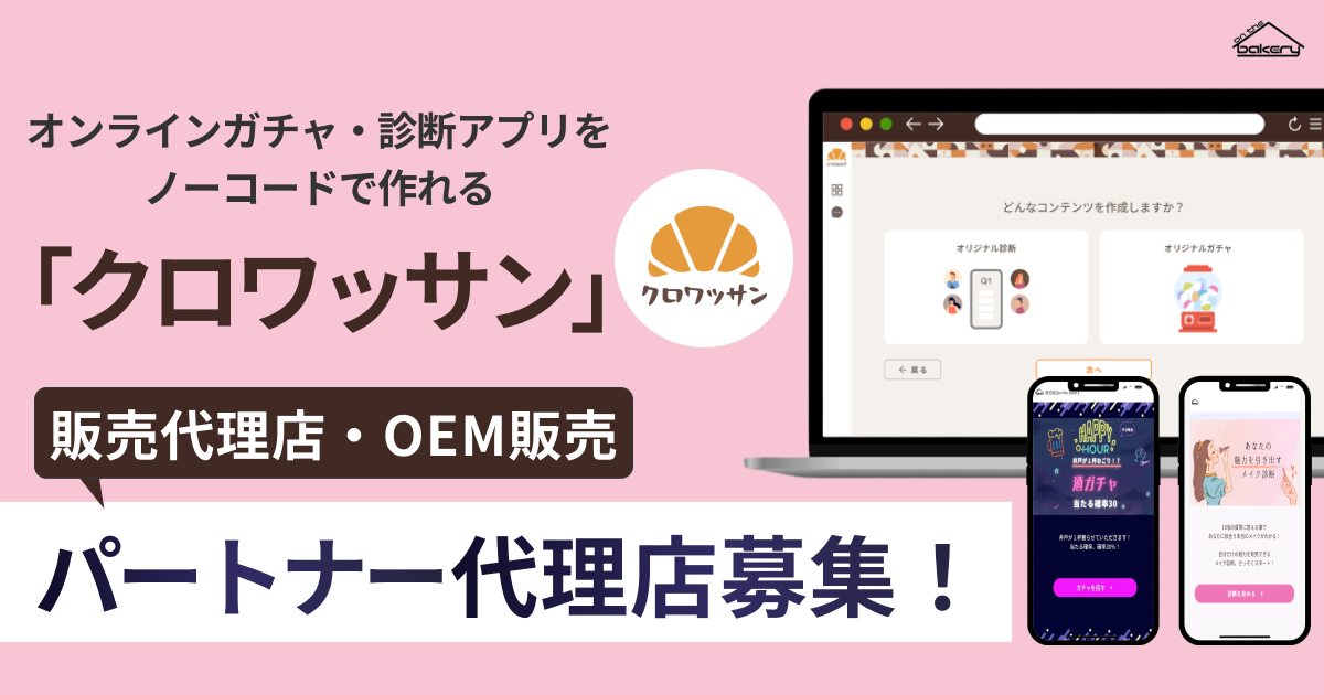 【パートナー代理店募集】オンラインガチャ・診断アプリをノーコードで作れる「クロワッサン」〜販売代理店・OEM販売〜