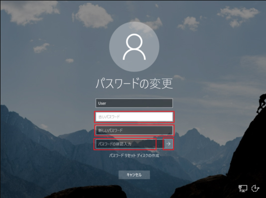 Step3:使用中のパスワードを入力して、「新しいパスワード」と「パスワードの確認入力」欄は空白にしたまま「→」をクリックします。
