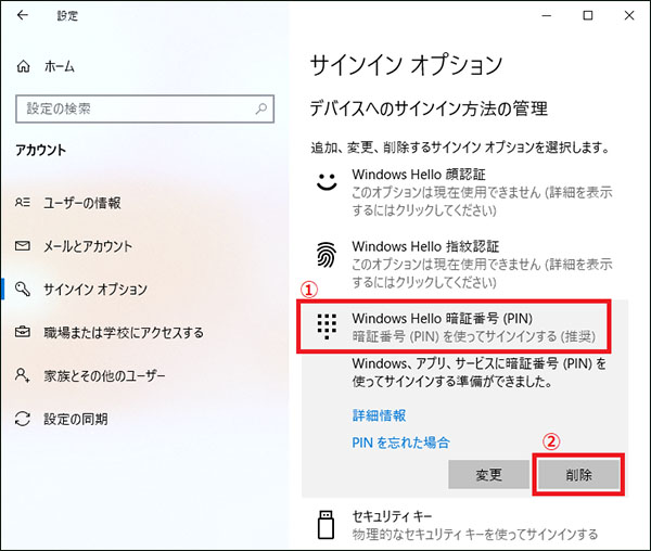- Windows 10 PINコードを忘れた場合の削除方法は?