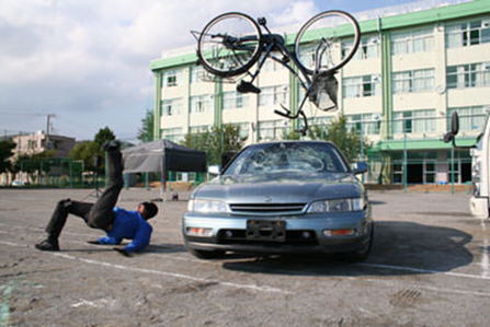 交通安全を目的にふじみ野市内の中学3校で、スタントマンが生徒の目の前で交通事故を再現し、交通事故の衝撃や怖さを実感させ、交通ルールの必要性について生徒自身に考える機会を与える教育技法を行います。