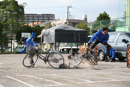 自転車の乗り方マナー、事故衝撃の再現(歩行者専用道路での自転車、見通しの悪い交差点、横断歩道、傘さし運転、夜間の無灯火の自転車)、車両事故はプロジェクターを利用し、再現映像を見せて車両事故の恐怖を上映など