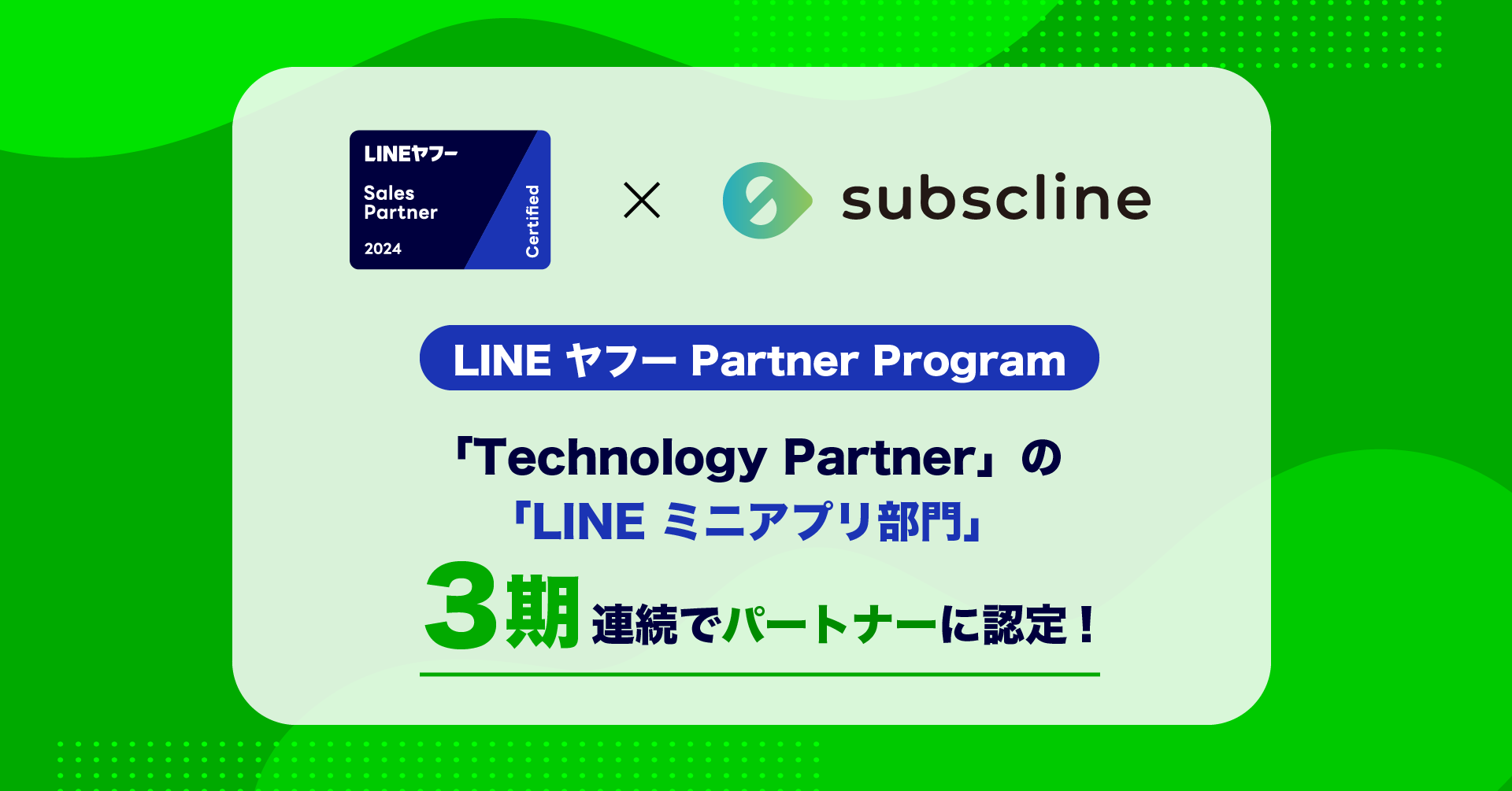 【サブスクライン】「LINE ヤフー Partner Program」において、3期連続で「Technology Partner」の「LINE ミニアプリ部門」に認定