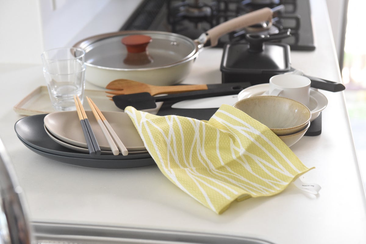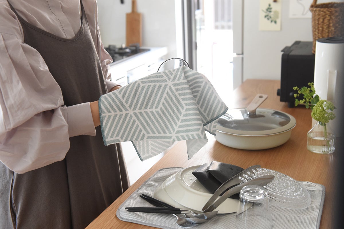 この織りの特長を活かしたキッチンクロスが、お皿拭きのあらゆるお悩みを解消してくれます。