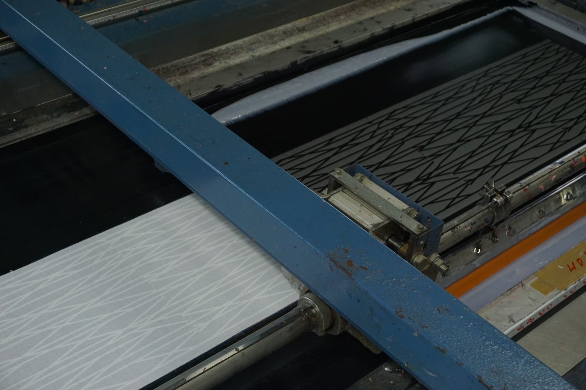その後、生地にスクリーンプリント。縫製、検品、検針を経て、一貫して工場で行われています。