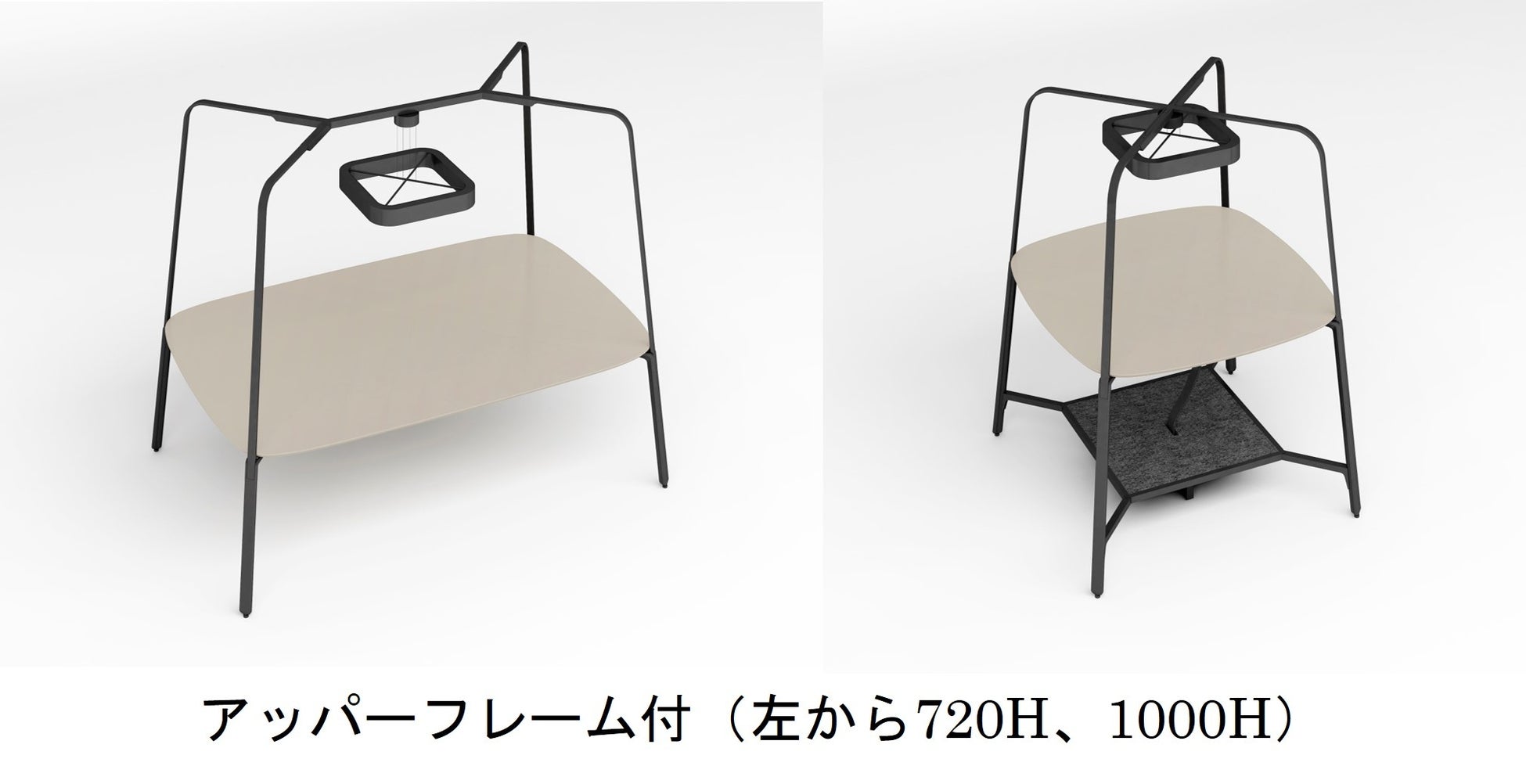 やぐら型のアッパーフレーム付は、場の一体感をより強め、コミュニケーションの活性化を促します。また、テーブルをランダムに配置することで、テーブル間に通り道が生まれ、コミュニケーションの機会を増やします。