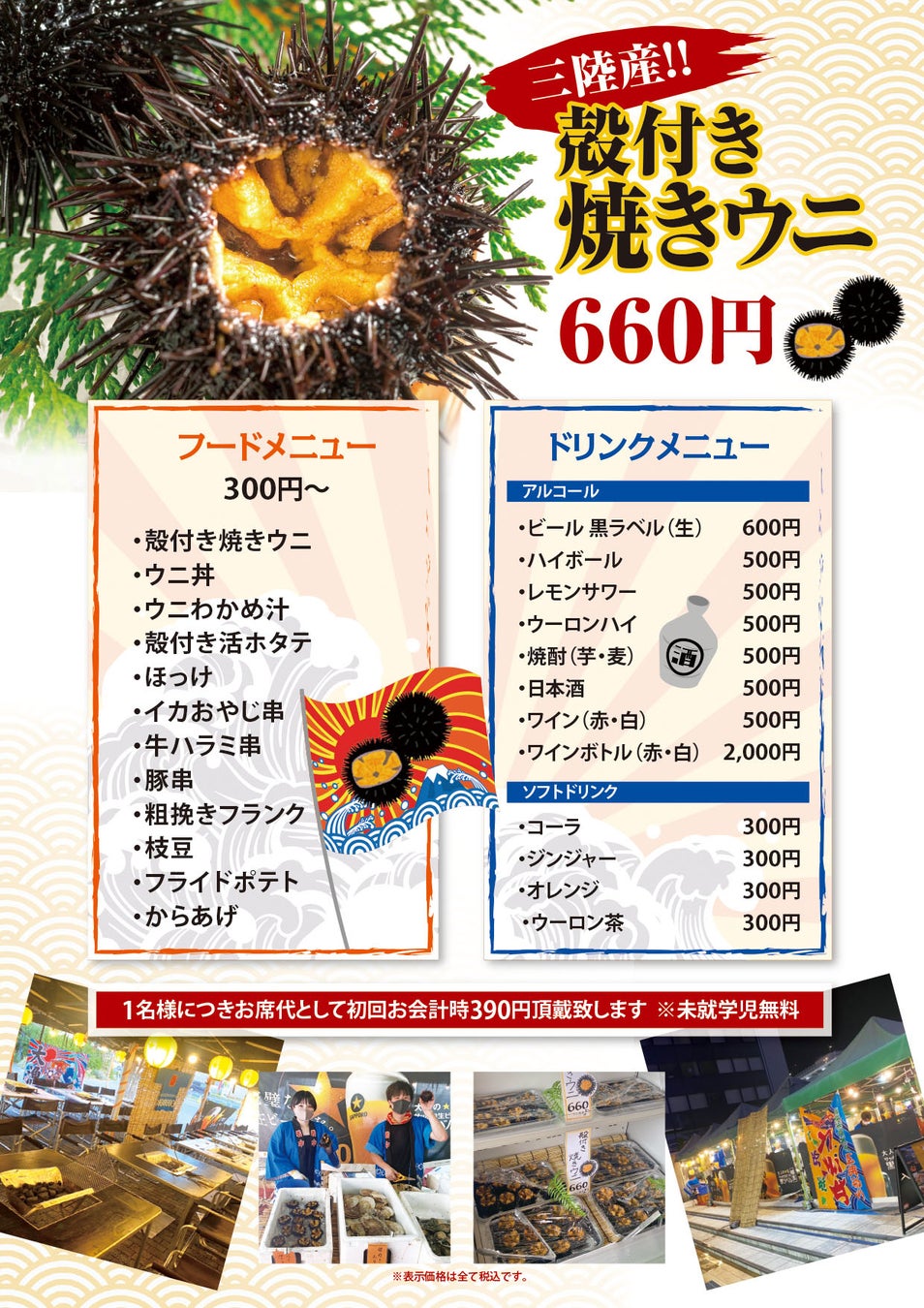 ③商品代 + お席代(炭代)390円/お一人をお会計!