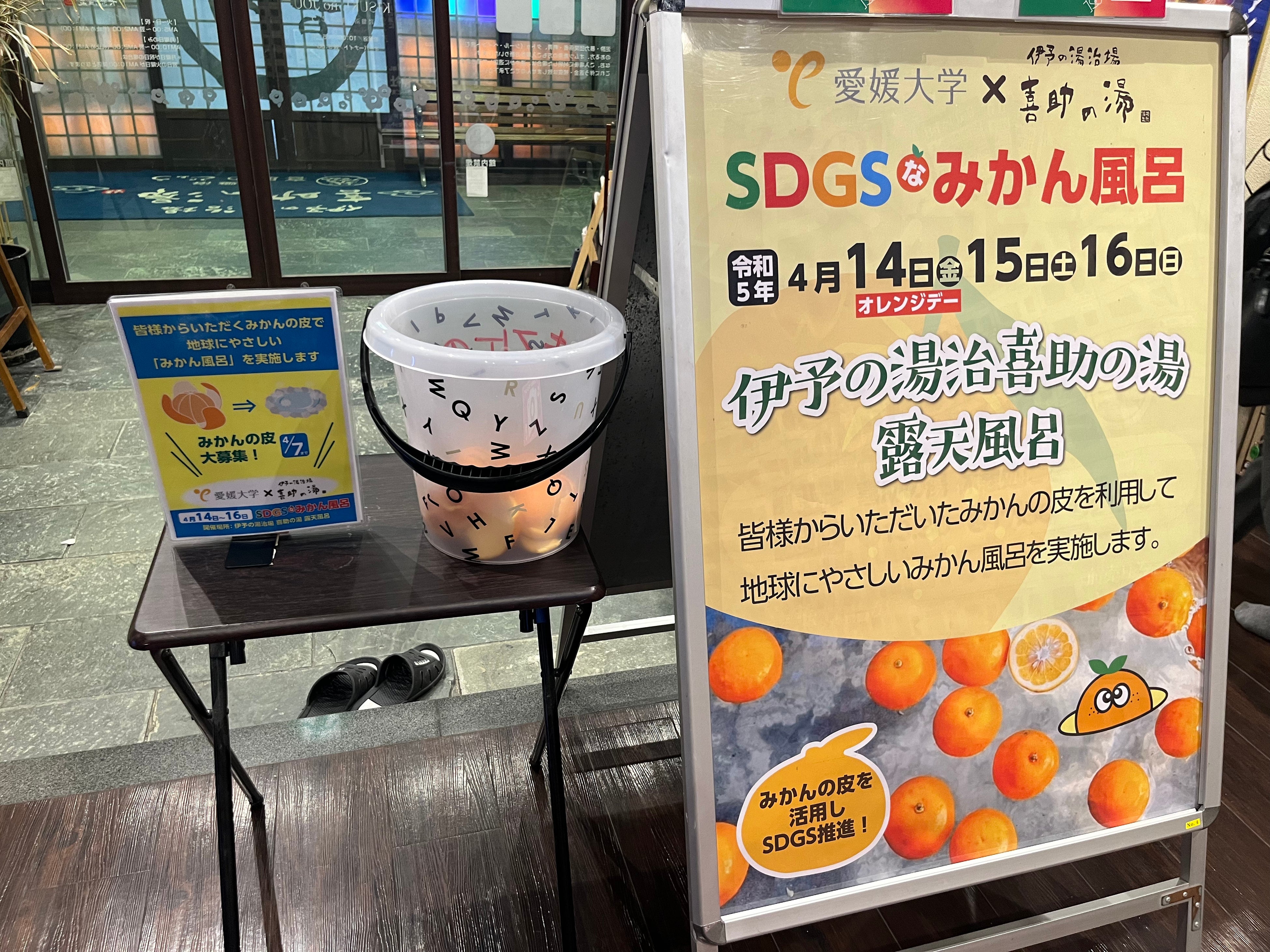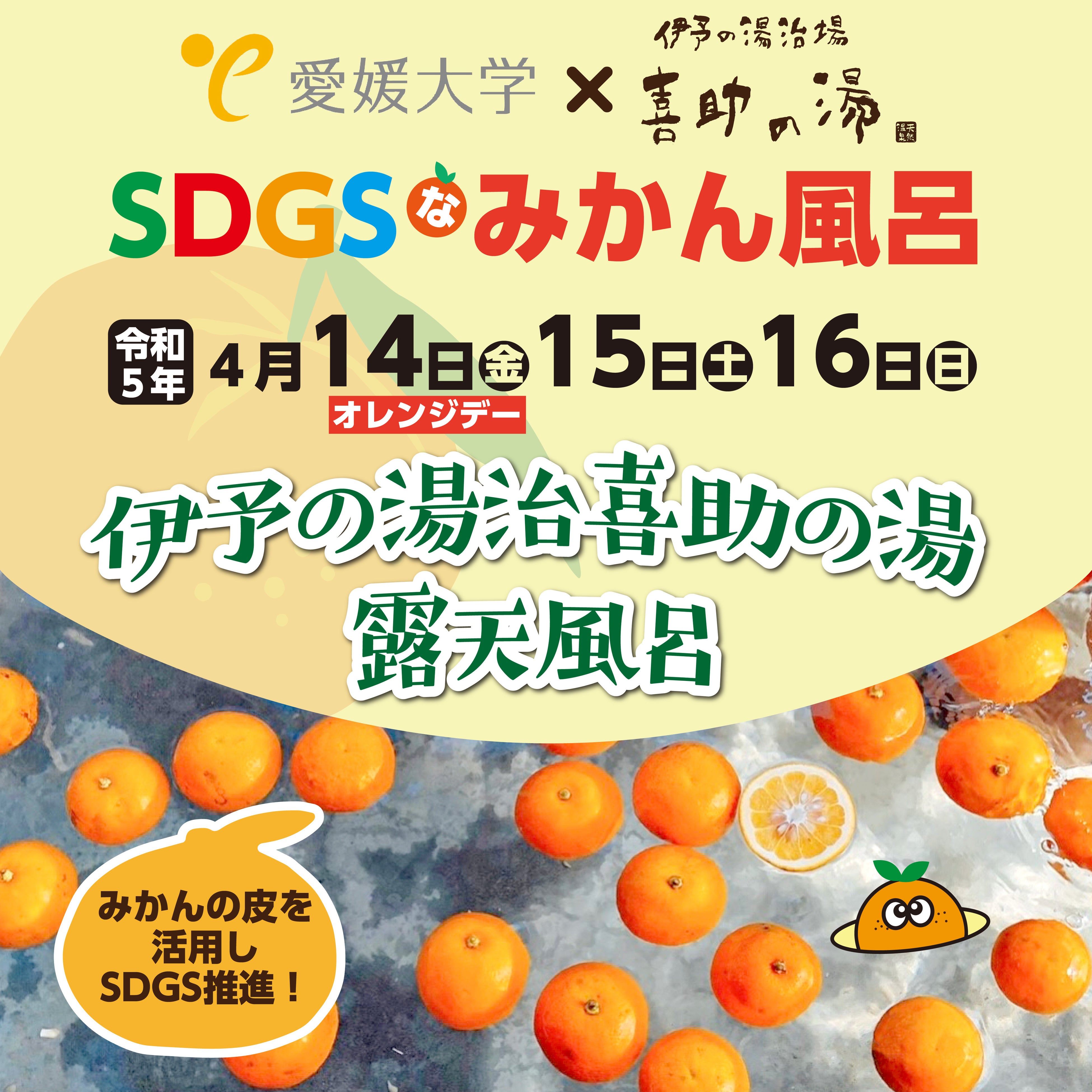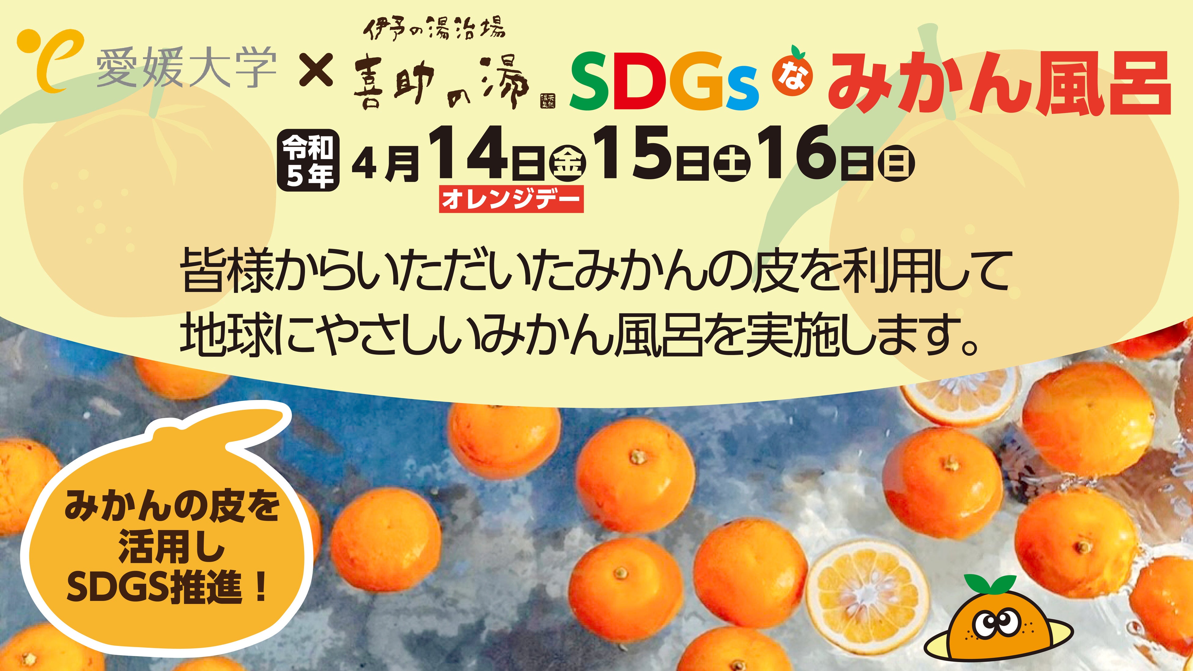 4月14日はオレンジデー!みかんの皮を活用しSDGsを促進する【SDGsなみかん風呂】イベントを愛媛大学とのコラボで開催【愛媛県・喜助の湯】