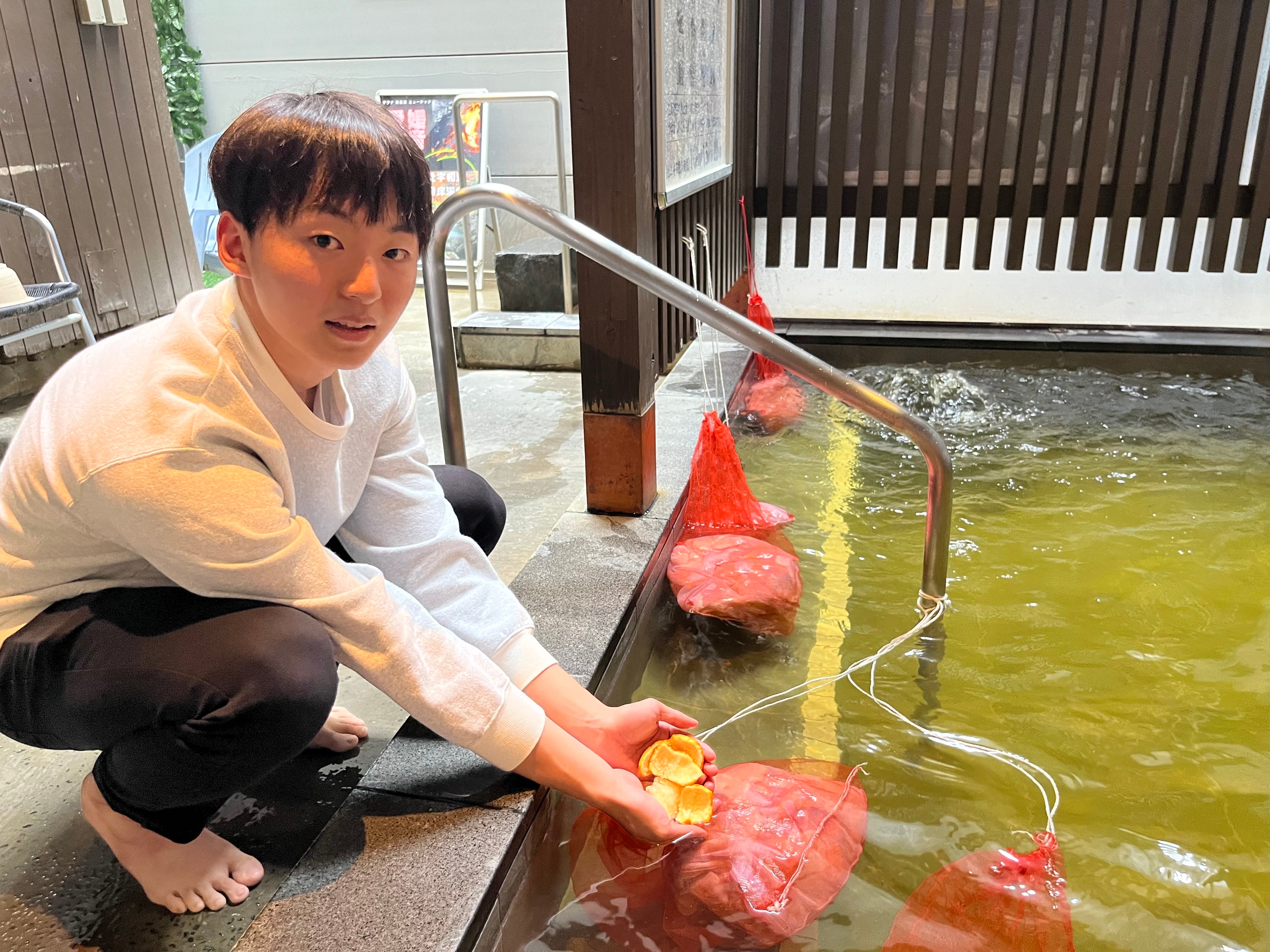 オレンジデーに愛媛大学生×喜助の湯コラボ企画「SGDsなみかん風呂」をお届けしています。