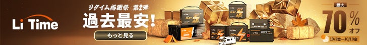 【10/04~10/10限定】最大70%OFF!LiTime(リタイム)秋の感謝祭 第2弾で、最安値のLiFePO4バッテリーとアクセサリーをゲット。さらに8%追加割引!公式サイトでお得に購入。