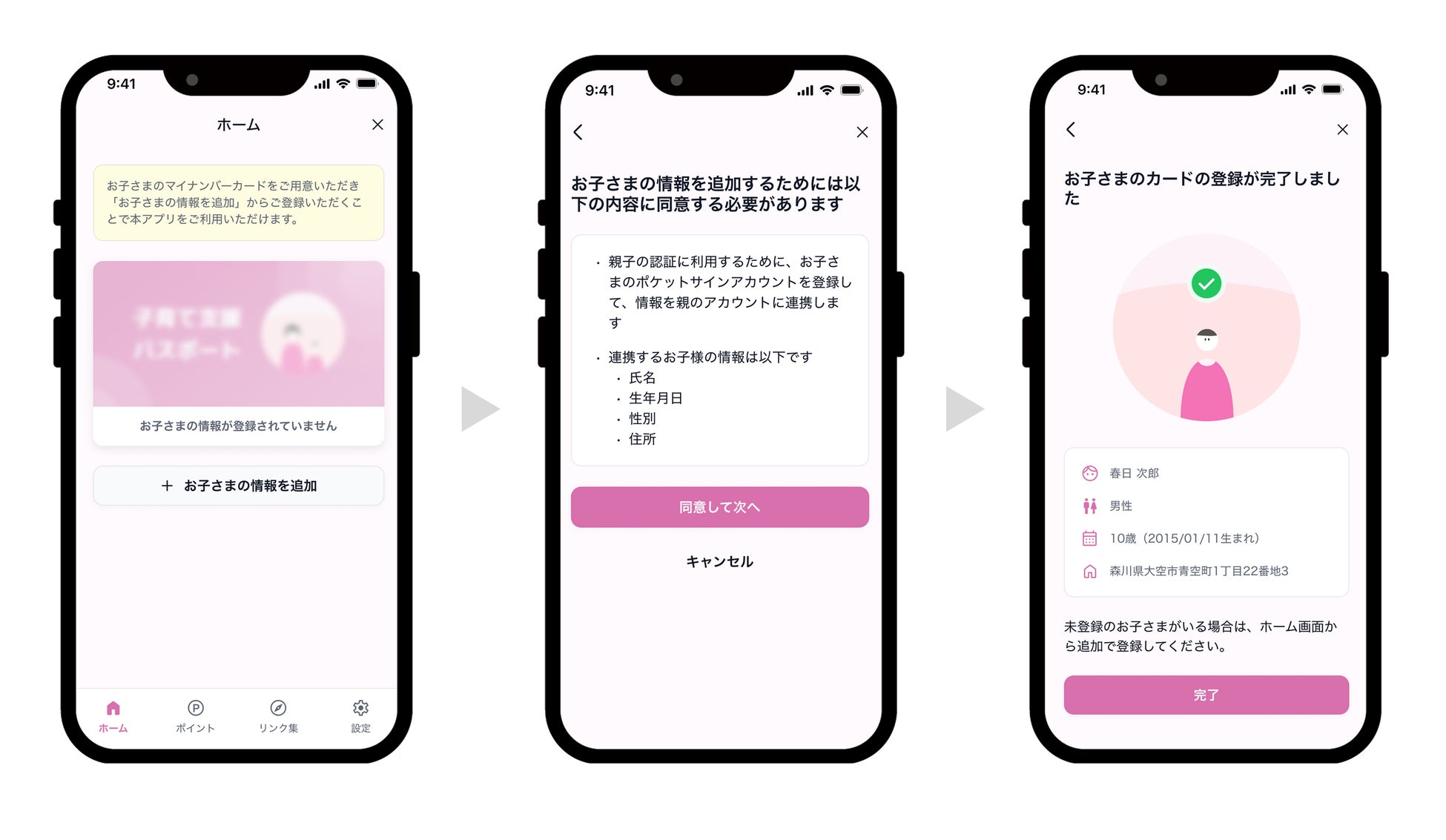 ポケットサイン株式会社(本社:東京都新宿区、代表取締役:梅本滉嗣、以下当社)は、マイナンバーカードを活用し、子育て世帯への支援をスムーズにする新たなミニアプリ「ポケットサイン子育て支援」を開発し、11月5日より宮城県で導入が開始されます。本アプリは、マイナンバーカードによる本人確認をもとに、子育てパスポートの表示や応援ポイント付与などの支援をアプリ上で完結させます。紙による申請や窓口訪問が不要となり、子育て世帯の負担軽減と自治体の業務効率化を同時に実現します。今後も当社は、マイナンバーカードの活用による、自治体業務のDX化を支援してまいります。