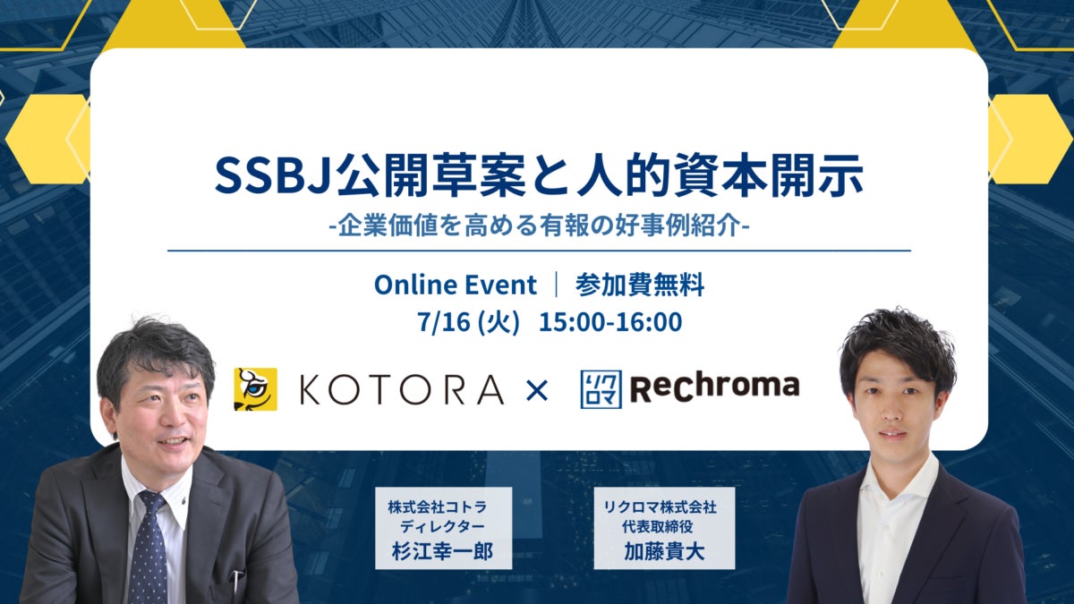 【7月16日 リクロマ×コトラ 共催】SSBJ公開草案と人的資本開示-企業価値を高める有報の好事例紹介-