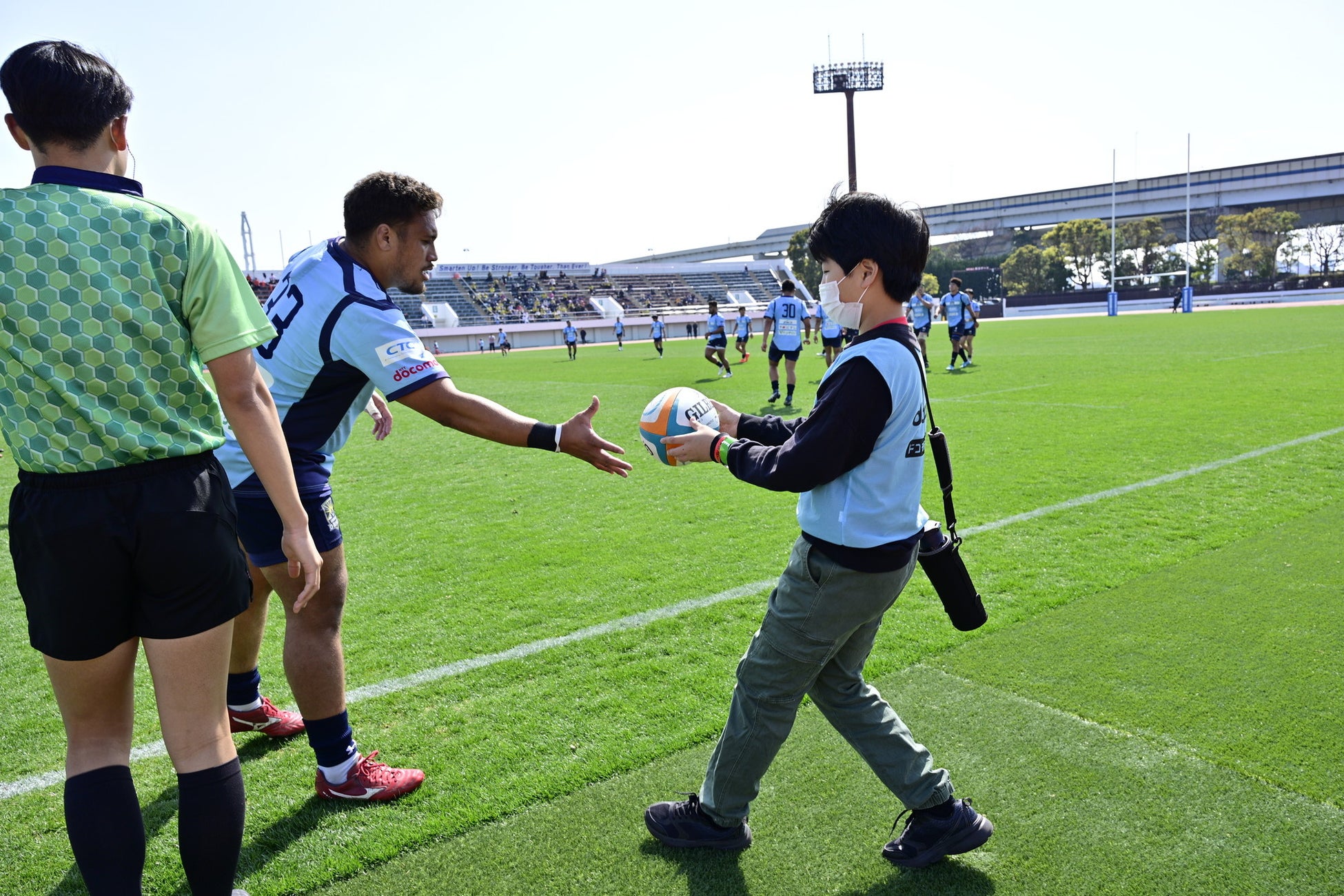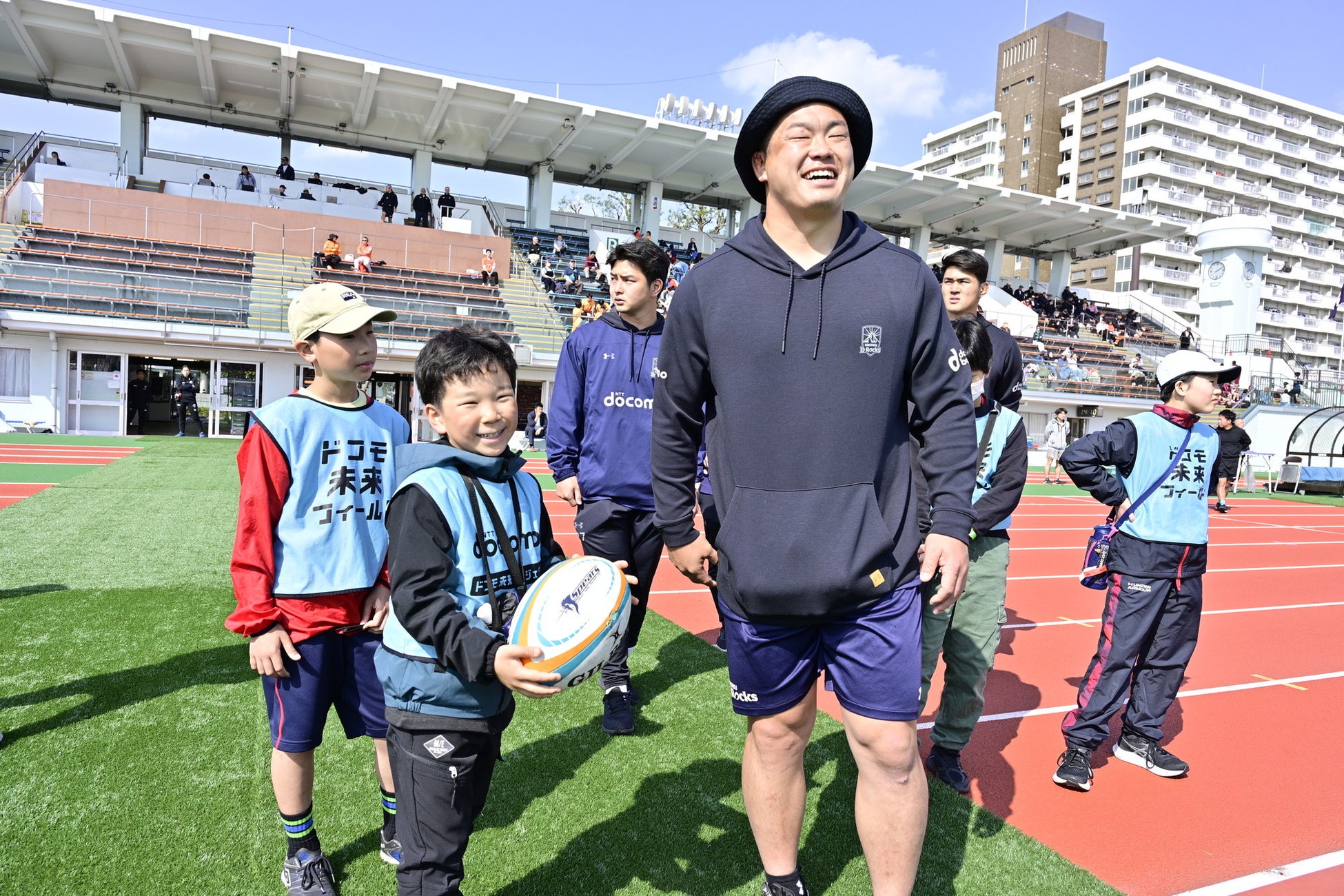 浦安D-Rocksは、株式会社NTTドコモが主催する、子どもたちがさまざまなプロのセカイを体験できるプロジェクト「ドコモ未来フィールド」に全面協力し、3月30日(日)に浦安Dパーク及びスピアーズえどりくフィールドにてクボタスピアーズ船橋・東京ベイと「ラグビー体験」を開催いたしました。