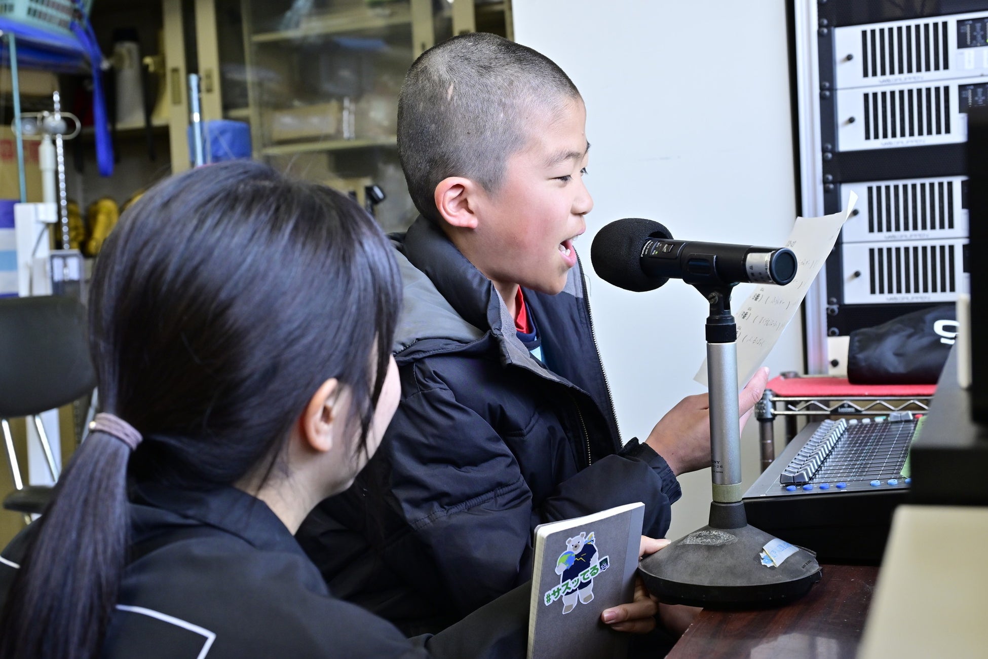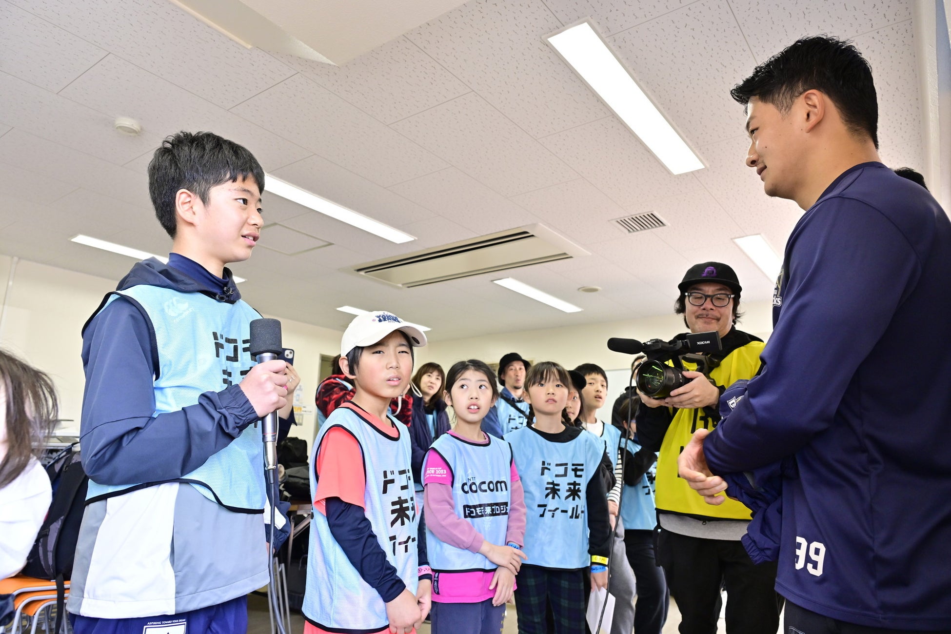 「浦安D-Rocks vs クボタスピアーズ船橋・東京ベイ」のトレーニングマッチで、さまざまなスタッフのお仕事を実体験。両チームの選手へのインタビュー体験。、会場でのアナウンス体験、ボールパーソンのお仕事、など、さまざまなお仕事を体験。アナウンス体験での選手紹介ではオリジナルの読み上げで会場がほっこりする場面も見られました。