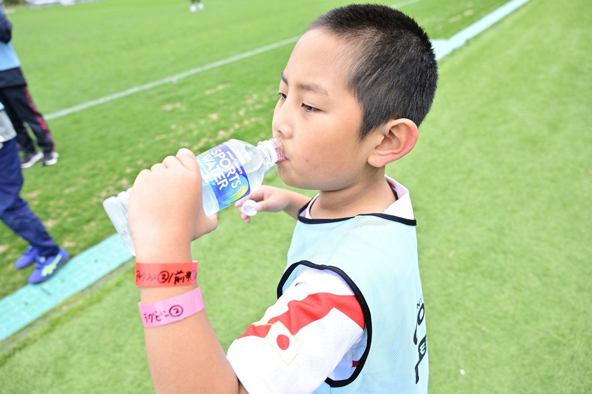 休憩中には、浦安D-Rocksのオフィシャルサプライヤーである「ポッカサッポロフード&ビバレッジ株式会社」 からスポーツドリンクをご提供いただき、体を動かしたお子さまにふるまわれました。練習後は、選手と一緒に記念撮影。ここで撮った写真は参加者の皆さんにプレゼントしました。