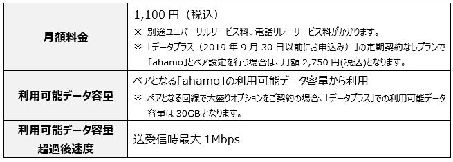 ※1 新規受付中の「5Gデータプラス」「データプラス2」、および新規受付を終了している「データプラス(2019年9月30日以前にお申込み)」において、「ahamo」とペア設定が可能となります。