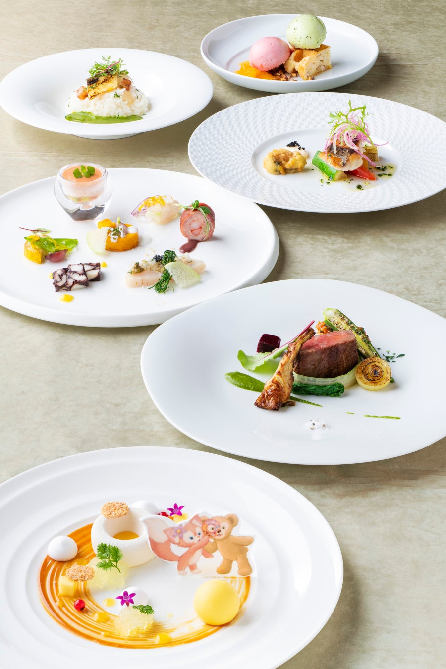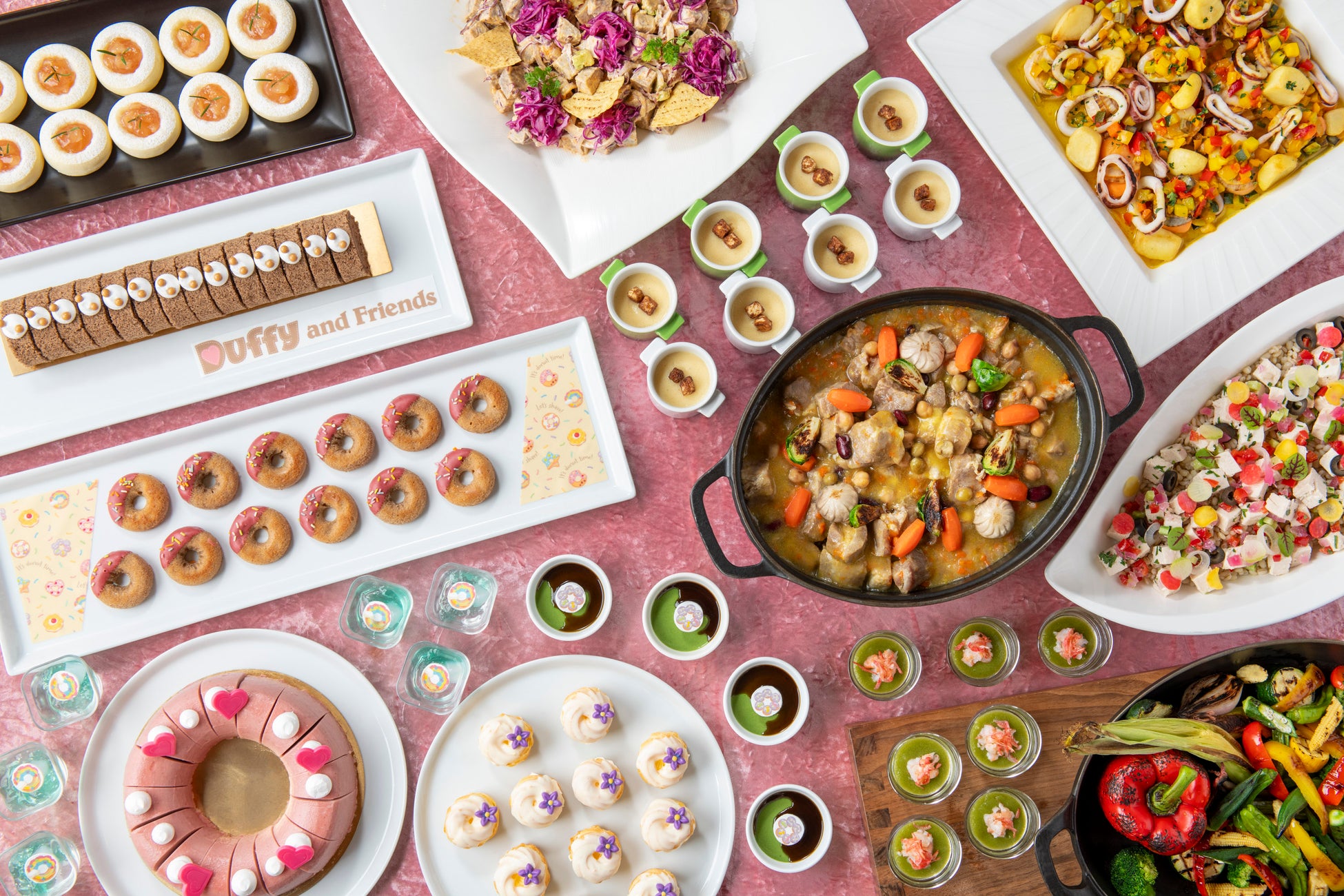 東京ディズニーシー・ホテルミラコスタの3つのレストランでも、7月3日(木)から9月15日(月)まで、「ダッフィー&フレンズのフィルド・ウィズ・ジョイ!」のスペシャルメニューを提供します。カラフルな色使いとドーナツのモチーフとともに、笑顔いっぱいのダッフィー&フレンズを表現した料理やスペシャルドリンクで、ゲストの皆さまに笑顔が広がるお食事のひとときをお届けします。東京ディズニーシー・ホテルミラコスタでも、ぜひ「ダッフィー&フレンズのフィルド・ウィズ・ジョイ!」の世界観をお楽しみください。