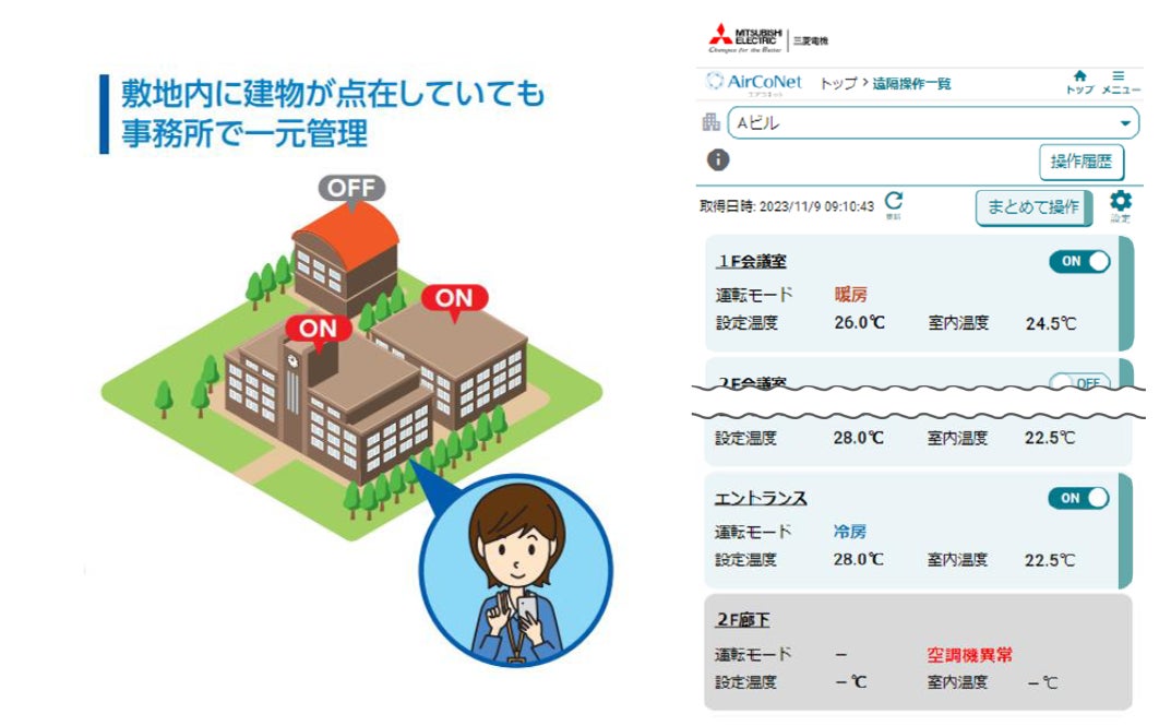 店舗・事務所用パッケージエアコンの機器運用やメンテナンス業務の効率化を支援するサービス「AirCoNet」に、遠隔操作機能を新たに追加(※13)。遠隔地での空調操作に関わる管理業務の効率化に貢献