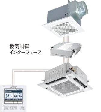 「換気制御インターフェース」(別売:2024年7月発売予定)により、空調機(※4)と当社製換気・送風機器(※5)との連携運転を実現。空調機の赤外線センサー人感ムーブアイを用いた換気機器の効率的な運転や、外気温が空調機の設定温度より低い場合に換気風量を増加させる外気冷房(※6)にも対応
