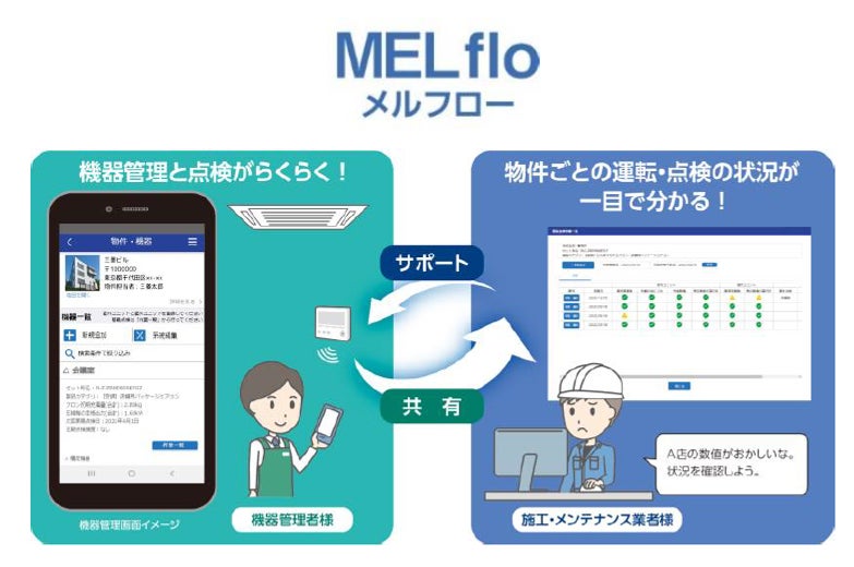 フロン法点検支援・機器管理ツール「MELflo」に、「冷凍空調機器に関する冷媒漏えい検知警報器要求事項(JRA4068)」で定められた、5年ごとの冷媒センサー交換時期を事前に通知する機能を追加